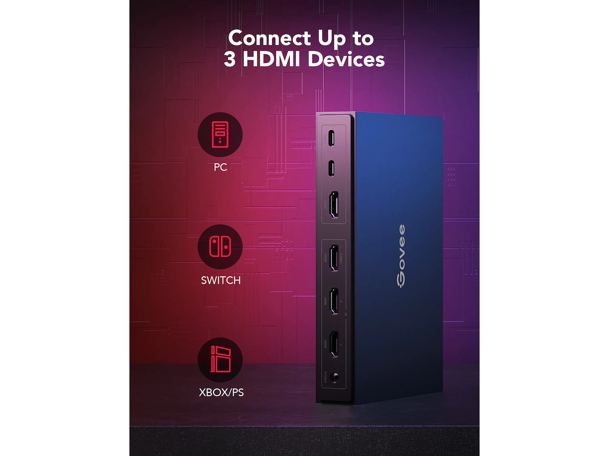 Med Govees eget «DreamView» IoT-basert smart synkroniseringssystem kan du skape det ultimate rommet etter hvert som AI Gaming Sync Box-belysningen speiles på tvers av alle de andre Govee-enhetene dine. Opplev de fantastiske fargene og den actionfylte bevegelsen til favorittspillene og favorittinnholdet dine i 360° miljø, med vegglys, stripelys, paneler, lamper og pærer synkroniseres med innholdet på skjermen i sanntid.