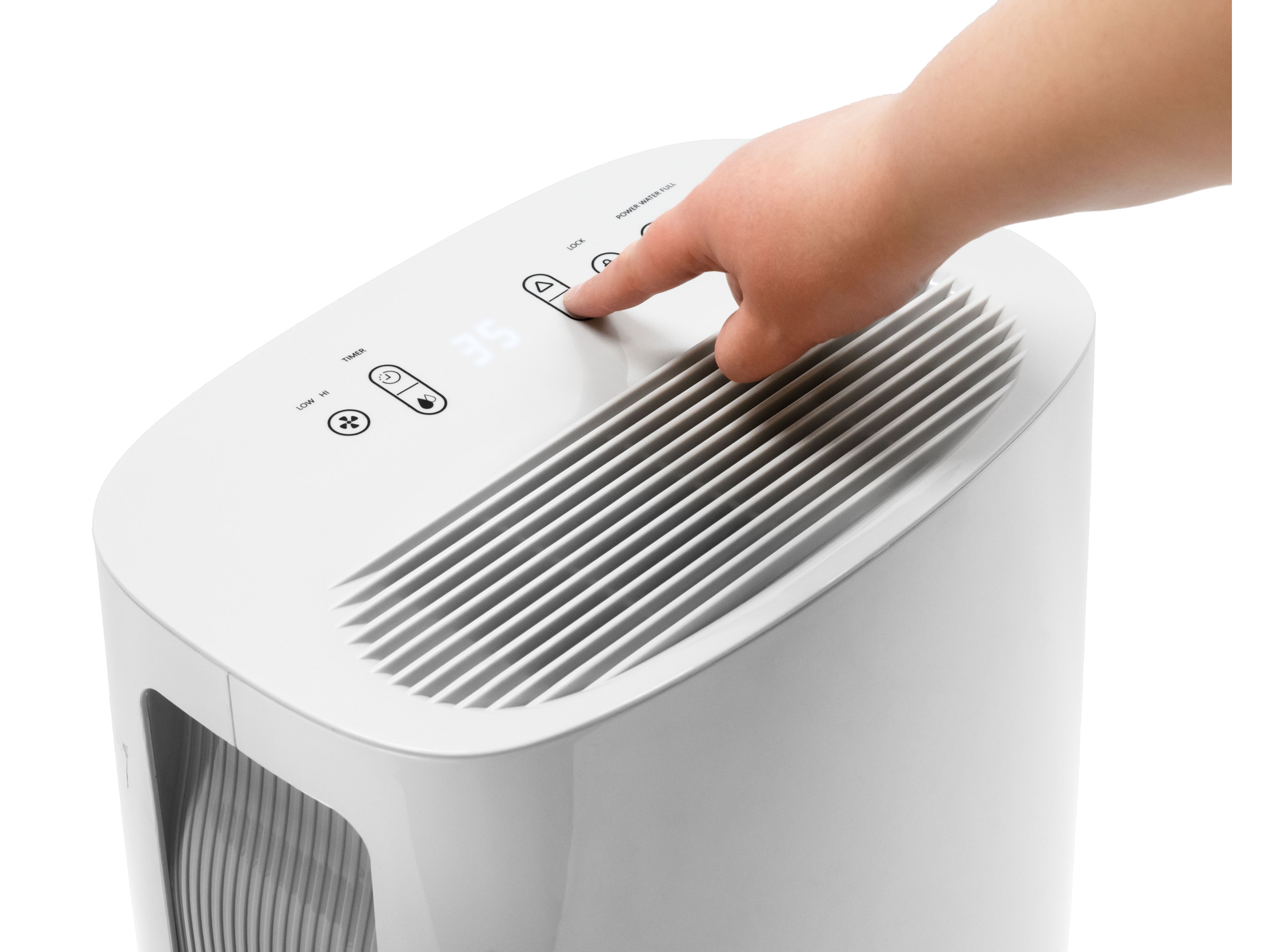 Du kan stille inn ønsket fuktighetsnivå i rommet du lar luftavfukteren kjøre i. Når luftfuktigheten er lavere enn den valgte fuktigheten, slutter viften å fungere. Det gjør at du slipper å la den kjøre når du har nådd nivået du ønsker, mye mer energieffektivt. Avfukteren har også en timer, slik at den kan slå seg på og av automatisk.