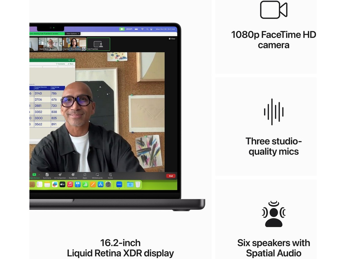• AVANSERT KAMERA OG LYD – Vis deg fra din beste side med et 1080p FaceTime HD-kamera, tre mikrofoner i studiokvalitet og seks høyttalere med romtilpasset lyd.