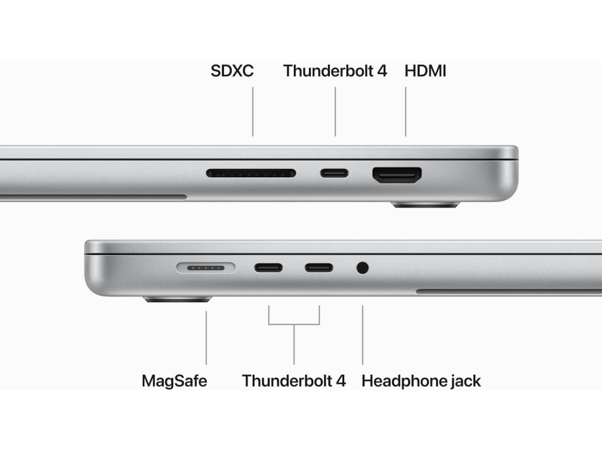 • KOBLE TIL ALT – Denne MacBook Pro har MagSafe-ladeport, tre Thunderbolt 4-porter, en SDXC-kortplass, en HDMI-port og en hodetelefonutgang. Få rask trådløs tilkobling med WiFi 6E (5) og Bluetooth 5.3. Og du kan koble til opptil to eksterne skjermer med M3 Pro, eller opptil fire med M3 Max.