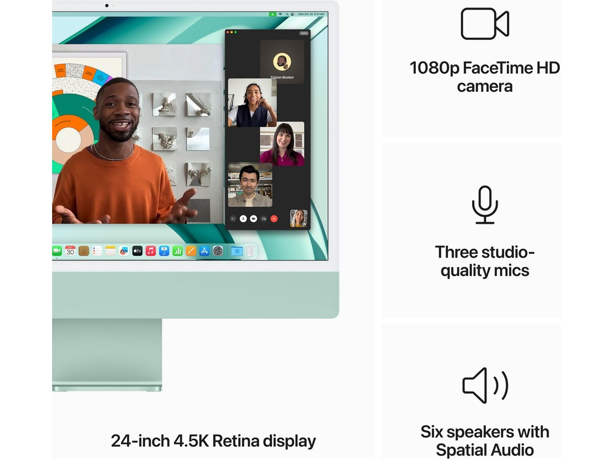 - OPPSLUKENDE SKJERM – 24-tommers Retina 4,5K-skjermen1 har lysstyrke på 500 nit og støtter én milliard farger. Alt fra å strømme filmer til å redigere bilder, vises klart og fargerikt.