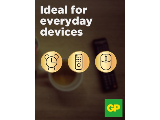 GP Super Alkaline er et perfekt standardbatteri, hensiktsmessig til de fleste produkter med middels til høyt strømforbruk som for eksempel leker, veggklokker og lommelykter.