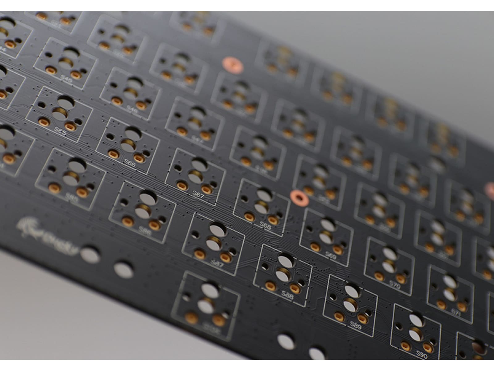 Polstringen i flere lag er tilstede for å sette fokus på rå akustikk fra bryterne og redusere uønsket støy under bruk. Videre er det plassert et ekstra lag med EVA-skumpute under kretskortet for å gi ytterligere forbedret lydreduksjon og negasjon av uønskede lyder.