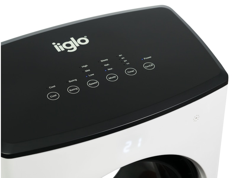 Denne bladløse luftkjøleren fra iiglo har et kontrollpanel på toppen, som gjør den enkel å bruke. Den kommer også med en fjernkontroll, slik at du kan fjernstyre den dersom du for eksempel ligger komfortabel i sofaen og ønsker å endre innstillingene.