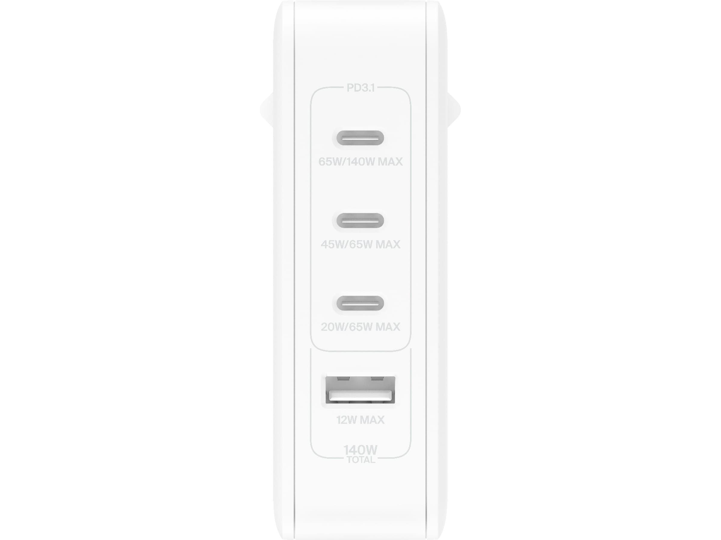Vår 4-ports lader gir deg maksimalt 140 W strøm for å effektivt lade en bærbar PC og opptil tre ekstra enheter samtidig.
