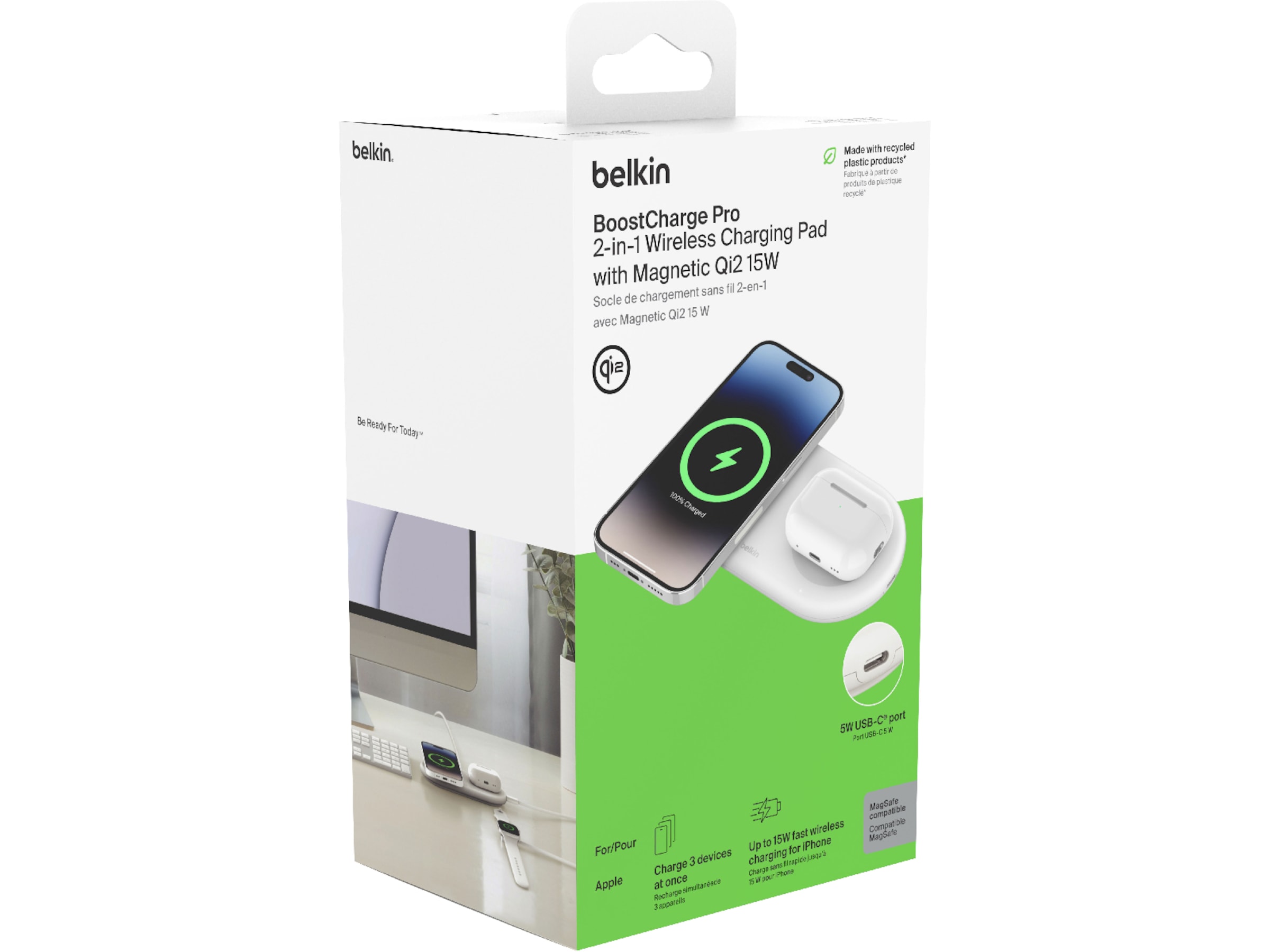 Belkin BoostCharge Pro 2-i-1 trådløs ladepute med magnetisk Qi2 15W