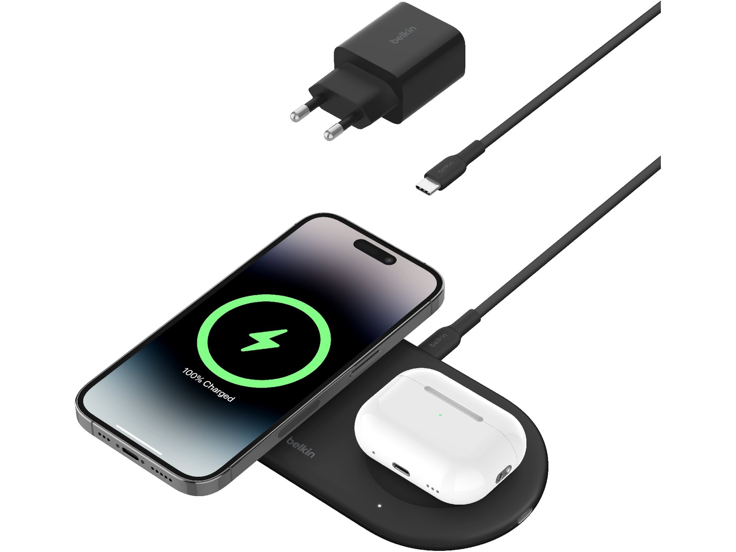 Belkin BoostCharge Pro 2-i-1 trådløs ladepute med magnetisk Qi2 15W