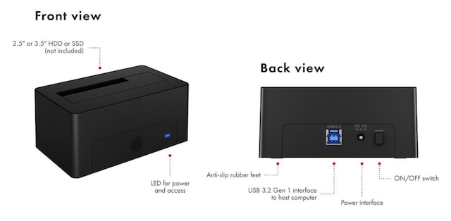 - PLUG & PLAY: Dokkingstasjonen støtter Plug & Play og HotSwap. Dette lar deg jobbe uten å installere drivere og enkelt bytte harddisk selv under en aktiv datatilkobling