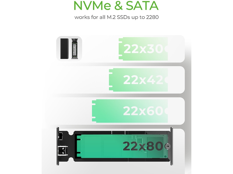 - NVME & SATA: ICY BOX IB-1817MCT-C31 er det riktige valget for din M.2 SSD. Kabinettet vårt er kompatibelt med både NVMe og SATA SSD-er og har plass til lagring i populære størrelser på opptil 2280