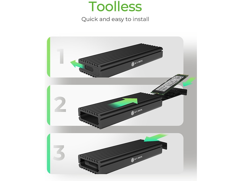 Icy Box-kabinett for 1x M.2 NVMe & SATA SSD