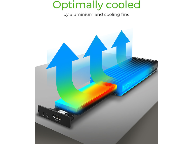 - RASK DATAOVERFØRING: ICY BOX M.2-kabinettet IB-1817MCT-C31 bruker USB 3.1 (Gen 2) med dataoverføringshastigheter på opptil 10 Gbps. Dette betyr at du til og med kan utføre kopieringsprosesser med store datamengder i en voldsom hastighet