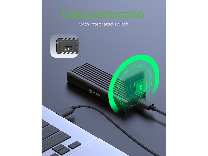Tap av data er helt irriterende, men kan unngås med IB-1817MCT-C31 fra ICY BOX®. Kabinettet vårt for M.2 SSD-er har en skrivebeskyttelse som enkelt kan aktiveres og deaktiveres igjen av en bryter. Så dataene dine er alltid trygge.