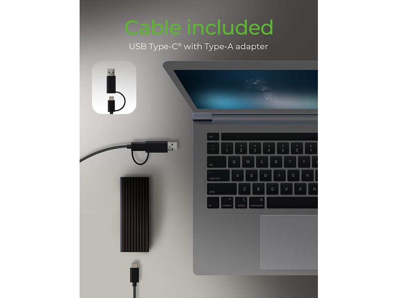 med USB 3.2 (Gen 2) Type-C® og Type-A-grensesnitt, skrivebeskyttelsesbryter og kjøleputer