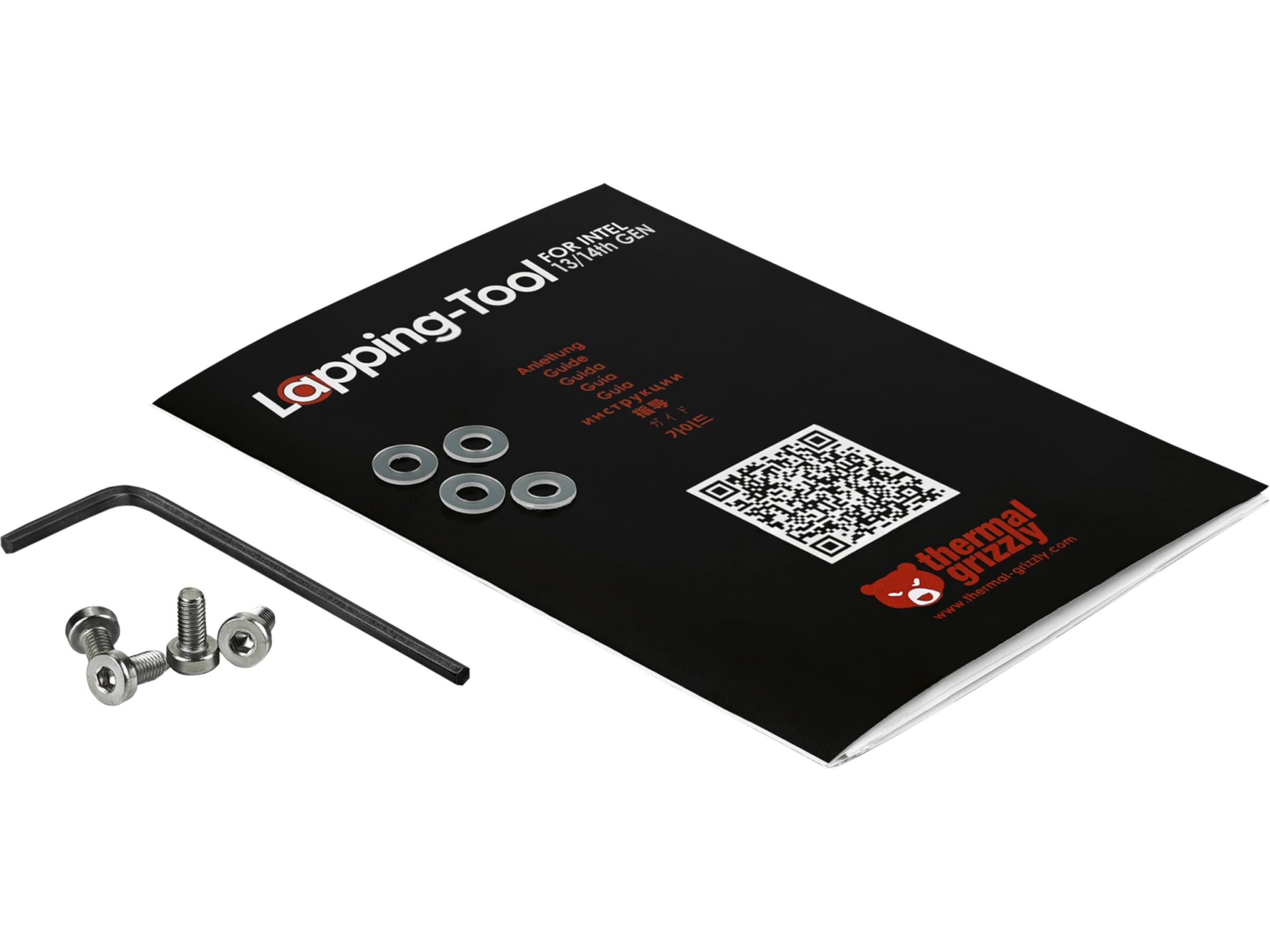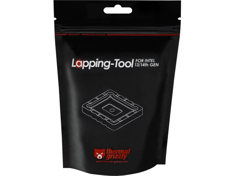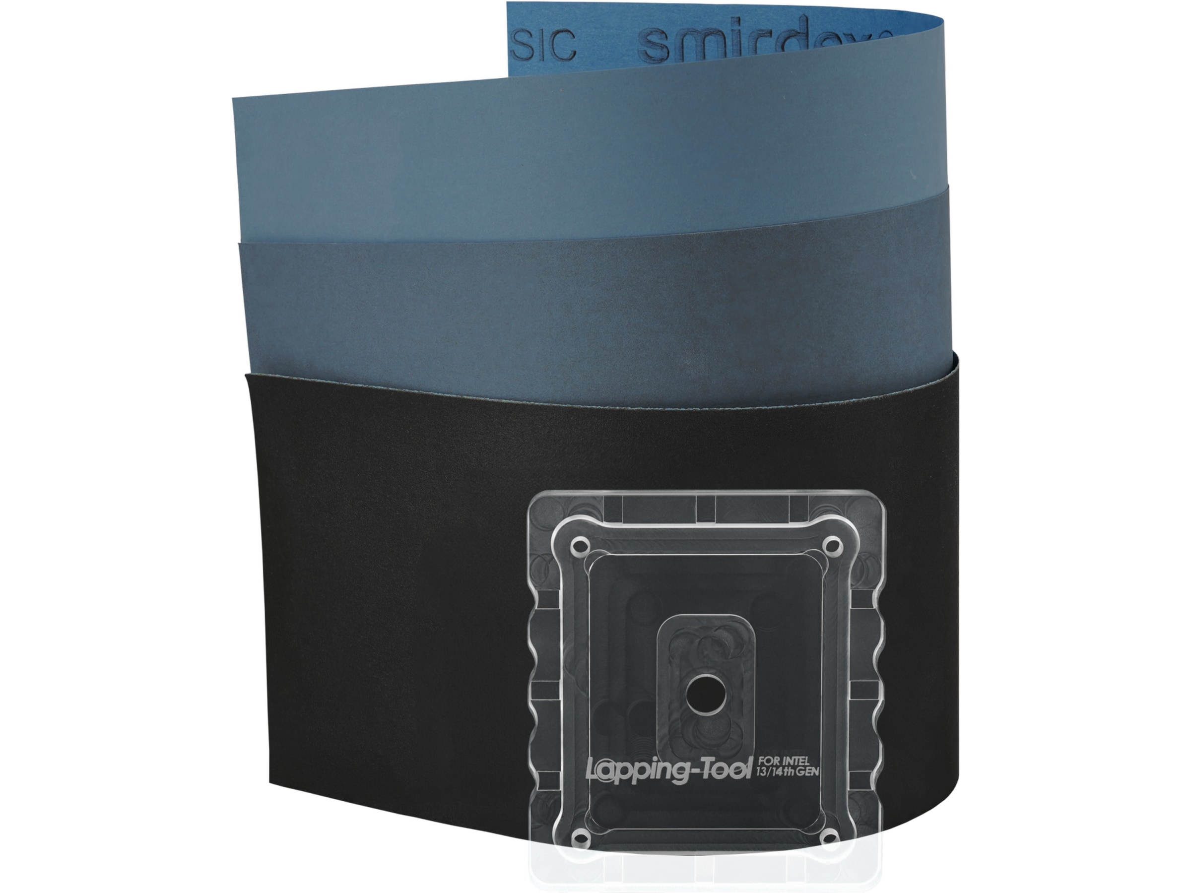 13./14. generasjons Lapping-Tool for Intel CPU-er tillater trygg sliping av varmesprederen. CPU-en er montert på verktøyet og det er mulig å fjerne 0,2 mm. Også kompatibel med 12. generasjons CPU-er. Vedlagt er sandpapir med korn 400, 1200 og 2500.
