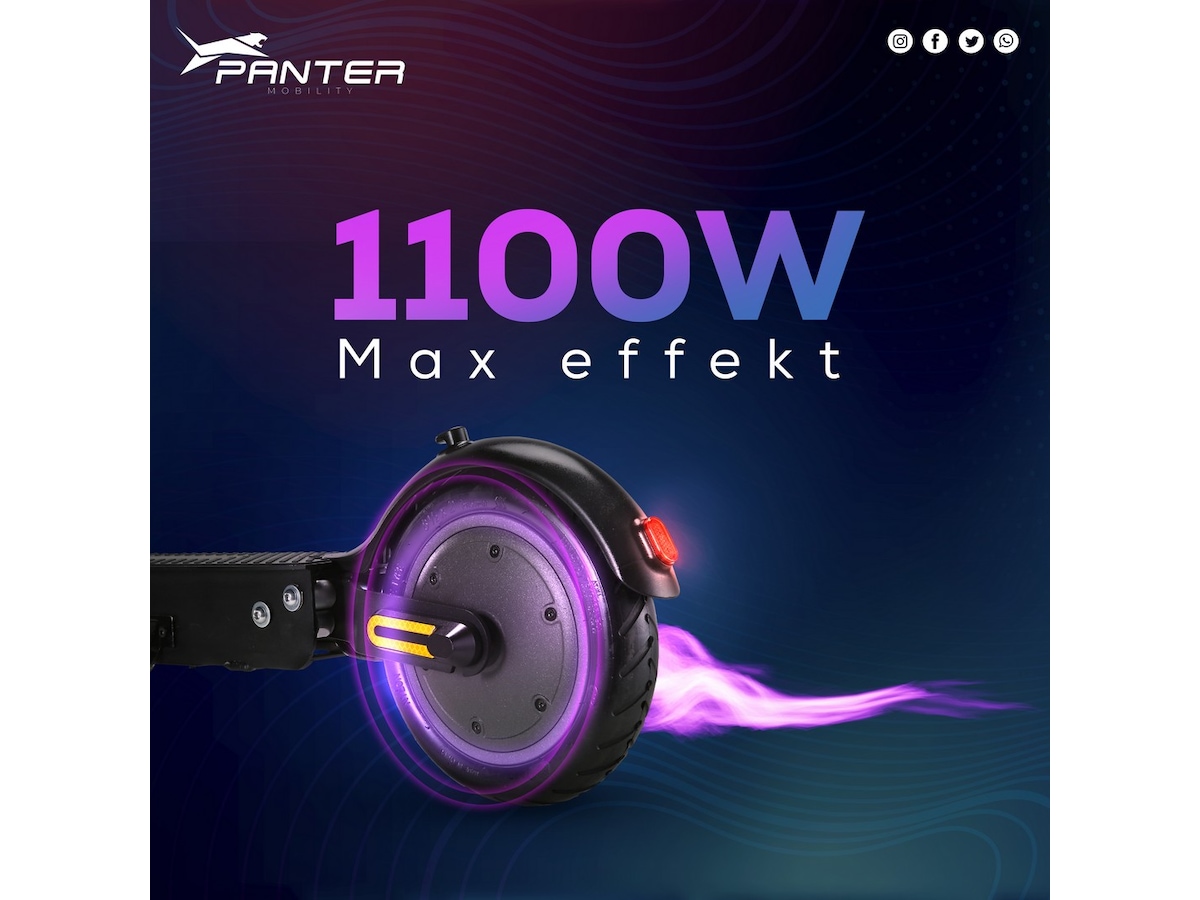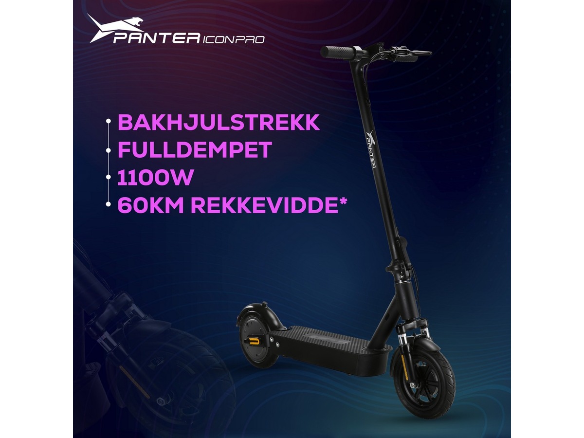 Helt nye Panter Icon Pro er en oppgradert versjon av Panter Icon, og har et 48V batteri og motor med 1100W Max effekt. Kraften er 1100 watt på hjulet - ikke kun teoretisk! For å få kraften ned i bakken er Panter Icon Pro designet med bakhjulstrekk. Dette dytter kraften ned istedenfor å spinne slik mange forhjulstrekkere gjør. Bakhjulstrekk understyrer betraktelig mindre og har bedre grep i svinger enn forhjulstrekk.