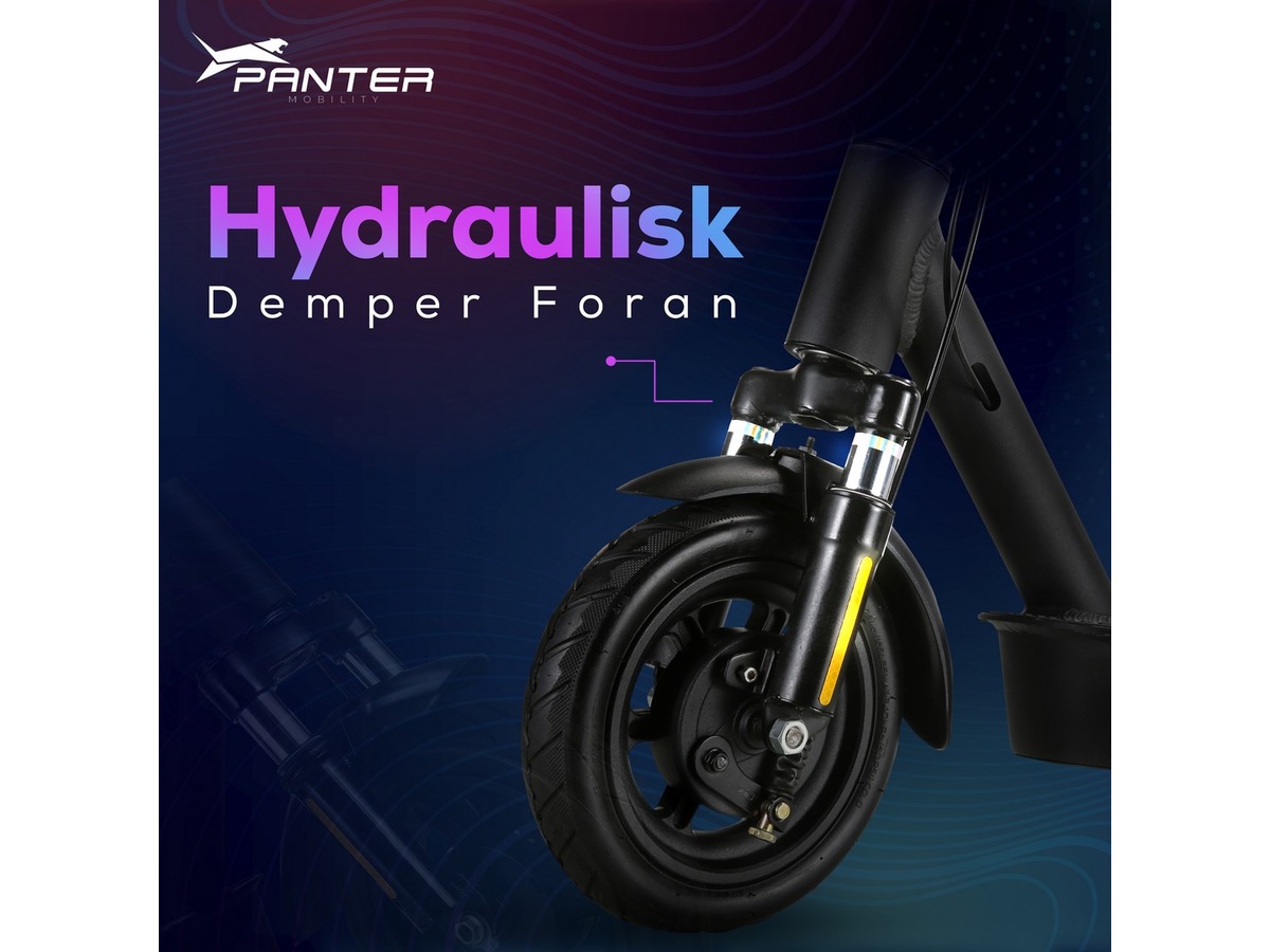 Panter Icon Pro er fulldempet for å gi optimal kjørekomfort. Den hydrauliske demperen foran fanger opp humper eller ujevnt underlag. Den regulerbare bakdemperen er en «coilover»-demper. Demperen bærer mesteparten av vekten til føreren og kan tilpasses deretter. Et godt dempesystem gir også bedre grep på ujevnt underlag, som gjør at el-sparkesykkelen blir enklere å kontrollere og tryggere på vanskelige forhold. Sparkesykkelen er utstyrt med punkteringsfrie dekk, men med gode dempere er allikevel komforten ivaretatt!