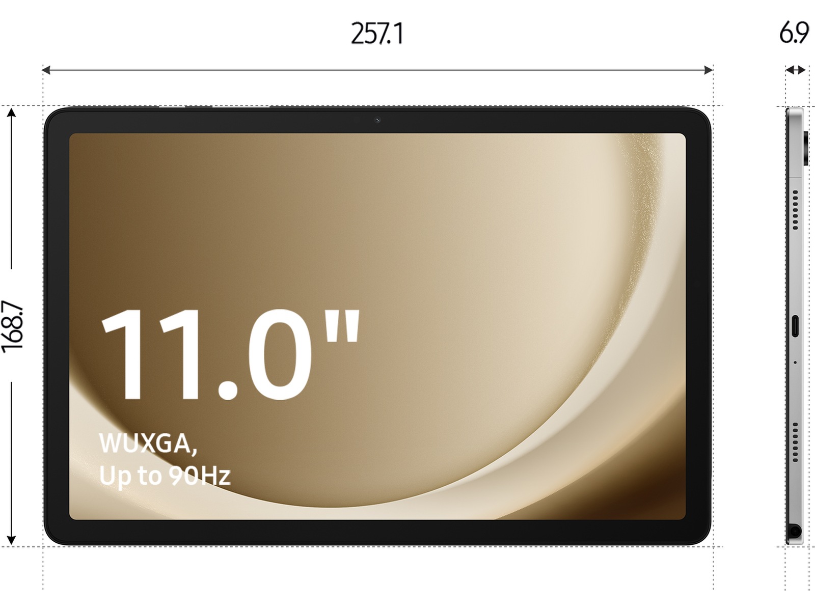 Den stilrene Tab A9 og Tab A9+ har et slankt design med glatt metalloverflate. Opplev Samsungs karakteristiske nettbrettdesign i fargene Graphite, Silver eller Navy – der hver nyanse har en avslappet eleganse.