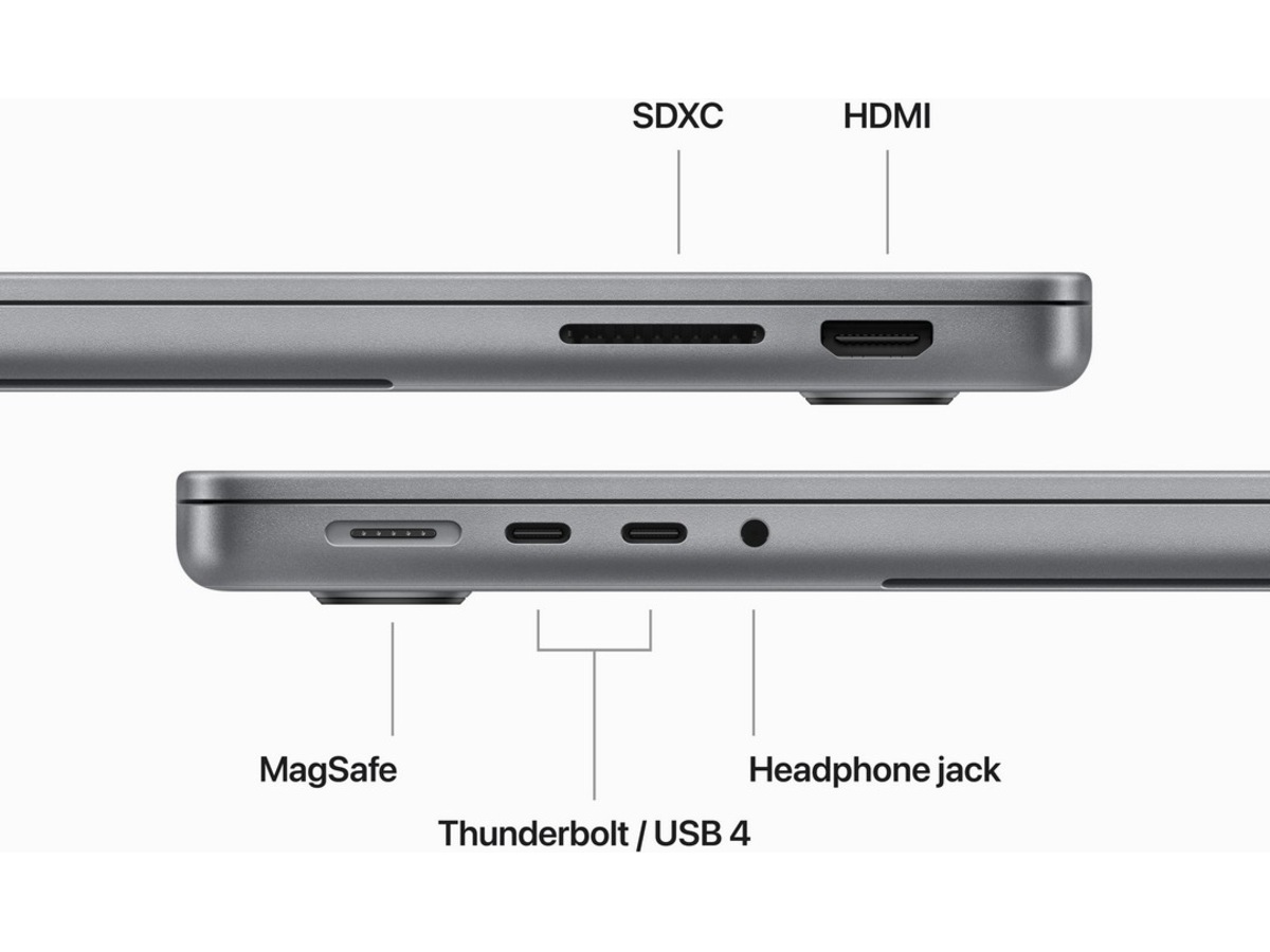 - KOBLE TIL ALT – Denne MacBook Pro har MagSafe-ladeport, to Thunderbolt- / USB 4-porter, en SDXC-kortplass, en HDMI-port og en hodetelefonutgang. Få rask trådløs tilkobling med WiFi 6E(5) og Bluetooth 5.3. Støtte for én ekstern skjerm.