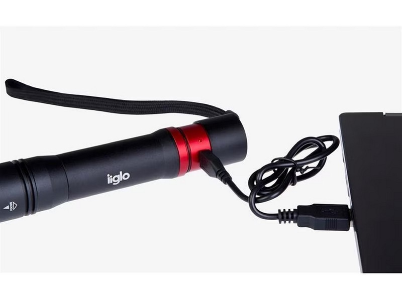 iiglo lommelykt drives av et oppladbart 3.7V 2600mAh 18650 Li-ion batteri som du lader opp med den medfølgende micro-USB kabelen.