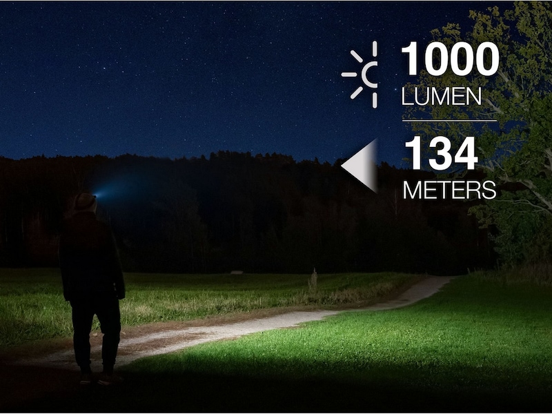 Hodelykten fra iiglo er en lett og robust lykt med en lysmengde på 2000 lumen som når en avstand på opptil 134 meter, med 3 kraftige SAMSUNG LH351D-lysdioder.