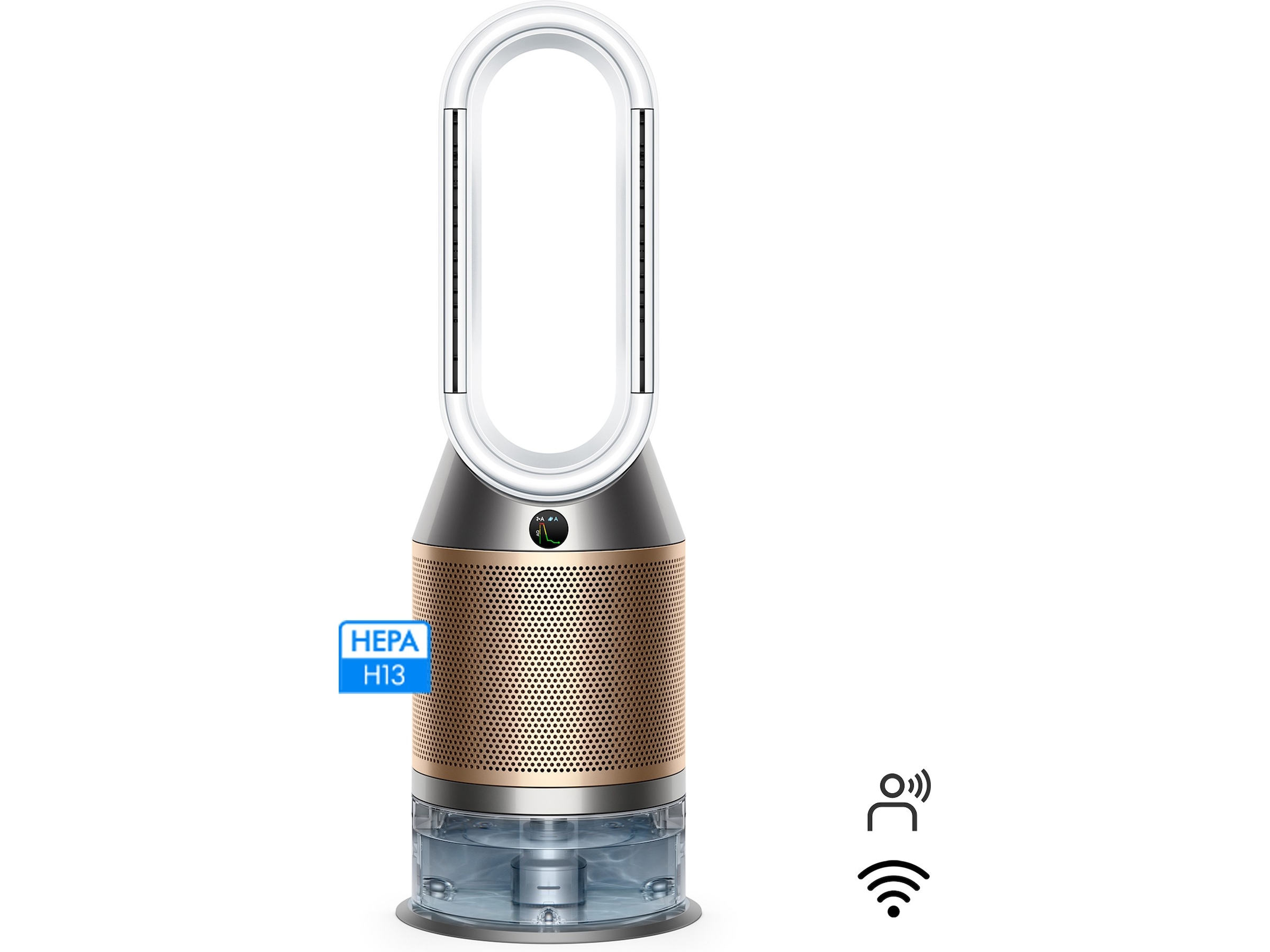 Luftkvalitetsindikator, Fuktnivå, Wi-Fi-forbindelse, Romtemperatur