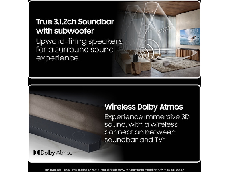 1 x subwoofer - trådløs, 1 x lydbjelke - vegg-/bordmonterbar