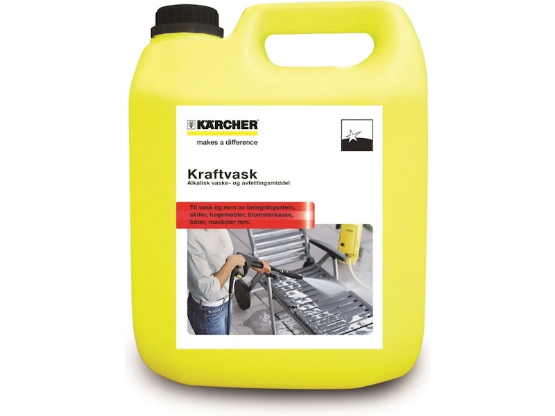 Kärcher kraftvask er et effektivt og hurtigvirkende rengjøringsmiddel, som samtidig er skånsomt mot underlaget. Connect'n' Clean er et praktisk system for enkelt bytte mellom ulike typer rengjøringsmidler. Kraftvasken er ypperlig til vask og rens av hagemøbler, båter, skifer, belegningsstein, blomsterkasser, maskiner og lignende. Kraftvasken har svært god løseevne på sot, luftforurensning, grønske, olje og annen vanskelig smuss (ikke asfalt). 4 liter.