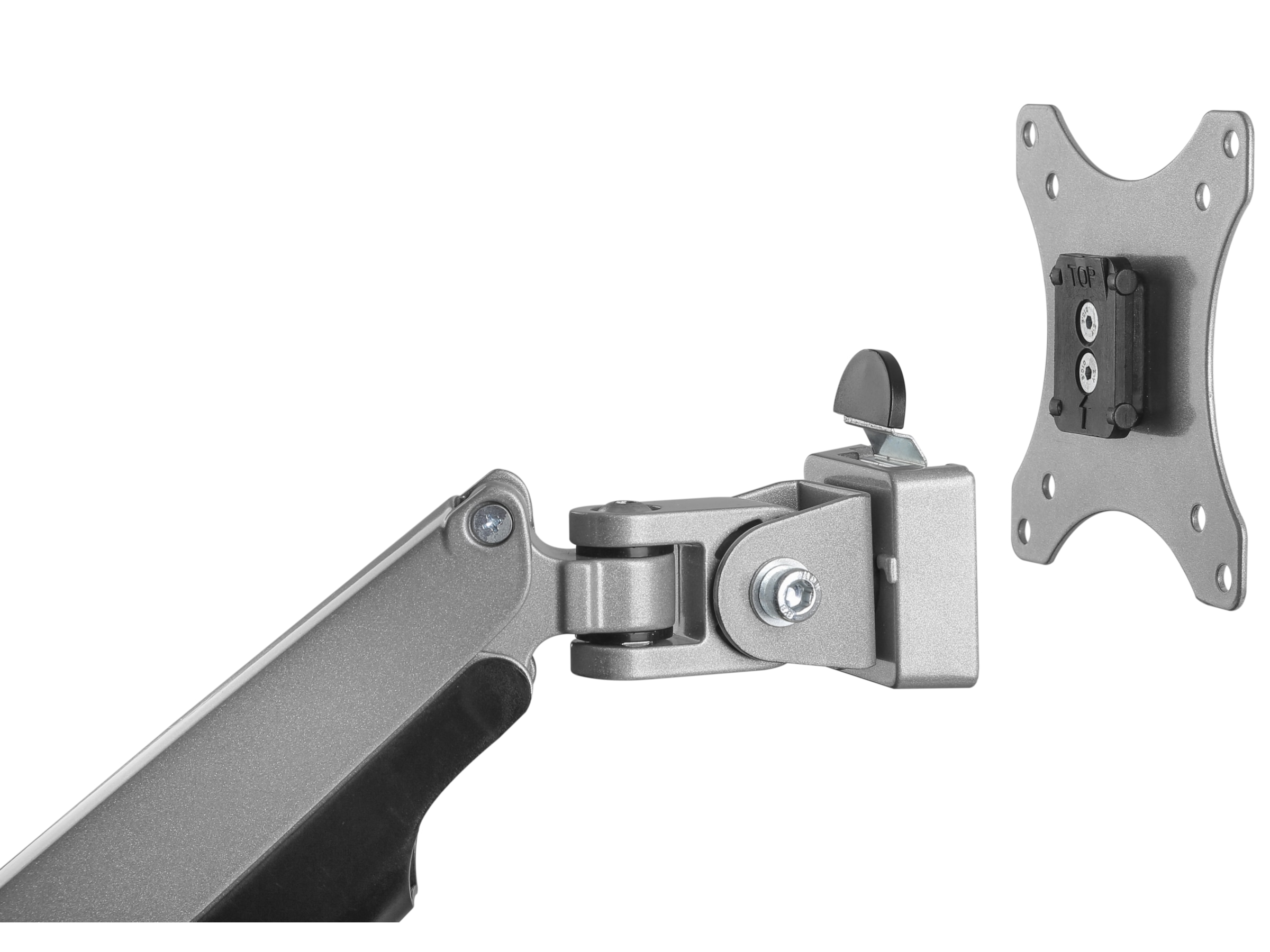 Skjermfestet har VESA-standarder på 75x75 - 100x100 og passer til både flate og buede skjermer på mellom 13 og 32 tommer med en maksimal vekt på 9 kg. VESA-platen er avtakbar, noe som forenkler monteringen og gjør det enklere for deg å bytte skjerm ved behov. Den 360-graders VESA-platen gir deg også fleksibilitet til å justere skjermene i ønsket posisjon.