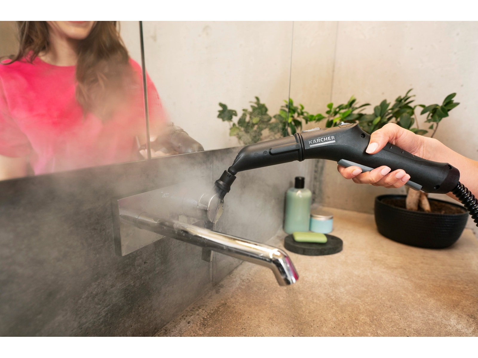SC 4 Deluxe med belyst LED-stripe og perfekt tilbehørsoppbevaring rengjør komfortabelt og uten avbrudd, takket være den kontinuerlig påfyllbare og avtakbare vanntanken.