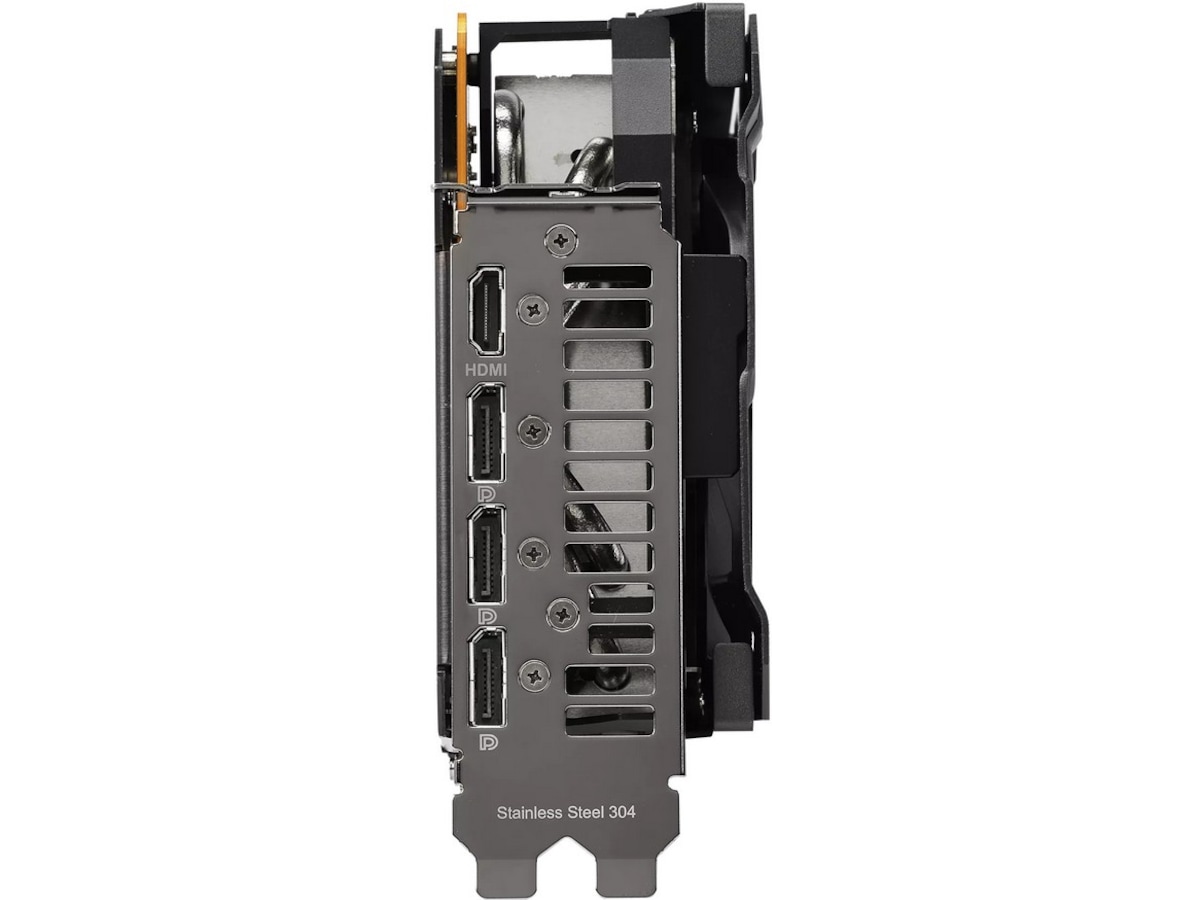 Varmesprederen drar varme opp i varmerør som bærer den gjennom en finner-oppstillingen som fyller det meste av kortets store, 2,9-slot fotavtrykk.