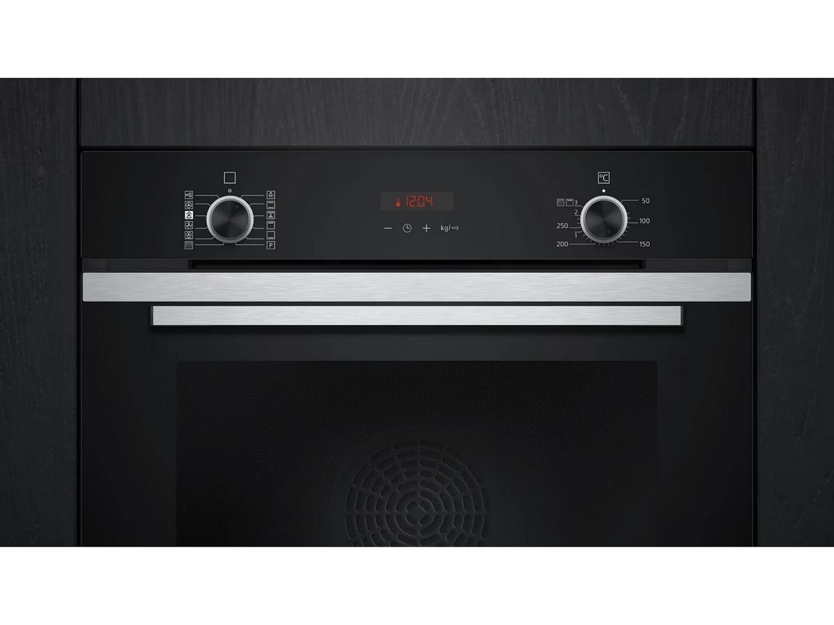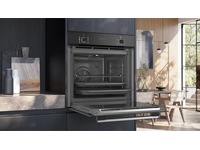 Innbyggingsovn med damptilførsel i sort/edelstål.