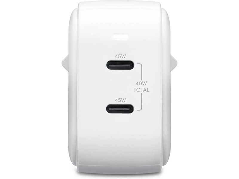 Laderen støtter dynamisk hurtiglading med PPS-teknologi, som er et tillegg til USB-PD 3.0 som gjør at du kan lade smarttelefonen din utrolig raskt. Denne veggladeren støtter opptil 45 W med PPS.