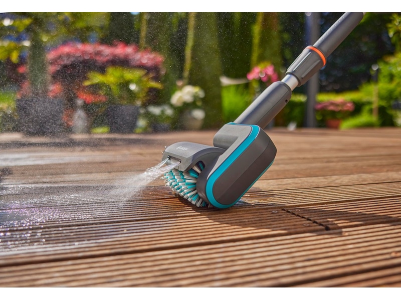 GARDENA Terrassebørste P4A 18V 2,0Ah sett for enkel rengjøring av tre, WPU, stein, terrasser, dekk og ujevne overflater.