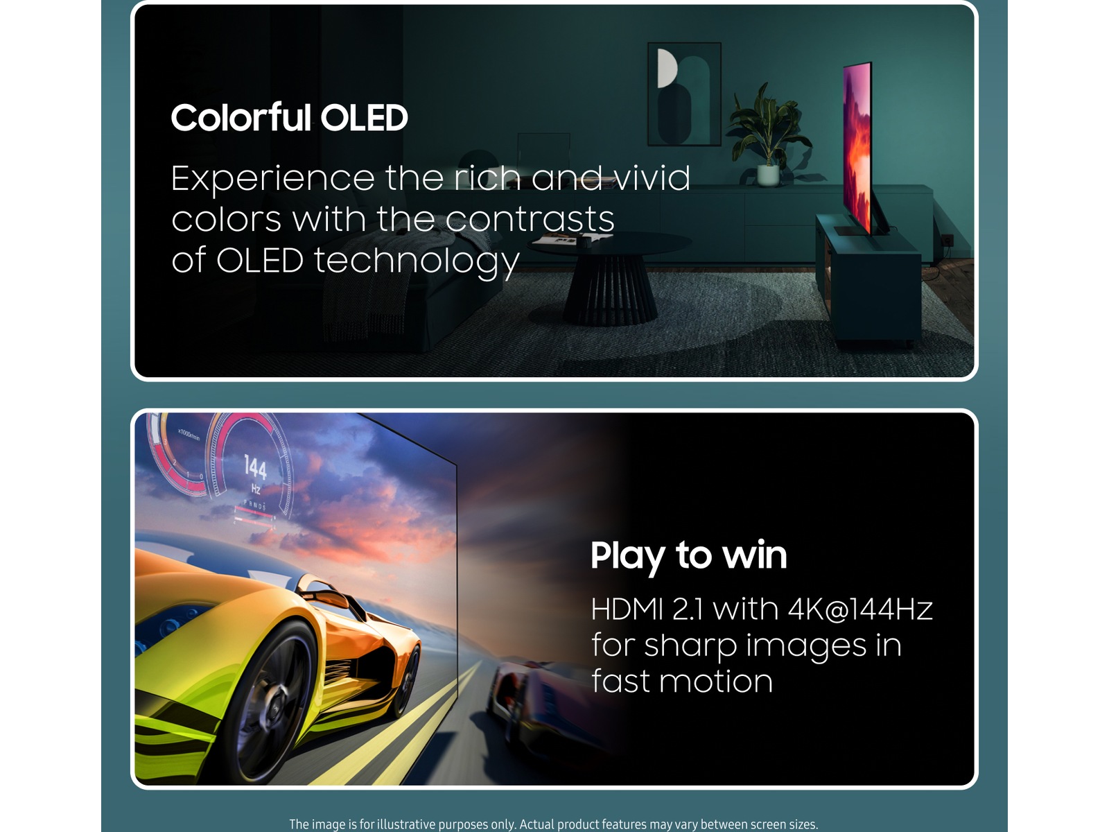 Ultratynne OLED leverer gnistrende farger og avgrunnsdypt sortnivå. Ved hjelp av AI forvandles alt innhold til 4K for knivskarpe detaljer også i scener med lynrask action. Få maksimalt utbytte av Dolby Atmos 3D-lyd ved å kombinere TV-en med en Samsung Q-Soundbar, og gled deg over film, spill og TV slik det er ment å oppleves.
