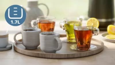 Ideell for å servere hele familien eller en gruppe. Med en kapasitet på 1,7 liter kan vannkokeren vår effektivt koke nok vann til opptil 7 kopper.