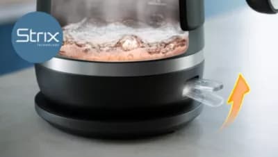 Den innebygde Strix-kontrolleren sørger for at den slår seg av automatisk når den er tom for vann eller løftes opp fra sokkelen. Dette reduserer risikoen for at det tørrkoke og forårsake skader og forhindrer energisløsing.