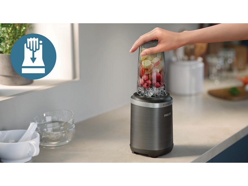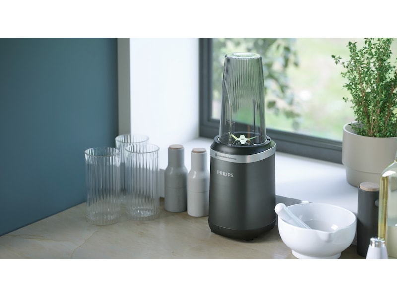 Philips Blender 5000 gir deg muligheten til å utforske en verden av smaker med dens allsidighet og effektivitet. Med ProBlend Plus-teknologien oppnår du jevne blandinger, selv med harde ingredienser som is og nøtter. Det elegante og kompakte designet passer perfekt inn på alle kjøkken, og med NutriU-appen får du tilgang til et bredt utvalg av oppskrifter og inspirasjon. Blenderens deler kan enkelt tas av og maskinvaskes for enkel rengjøring.