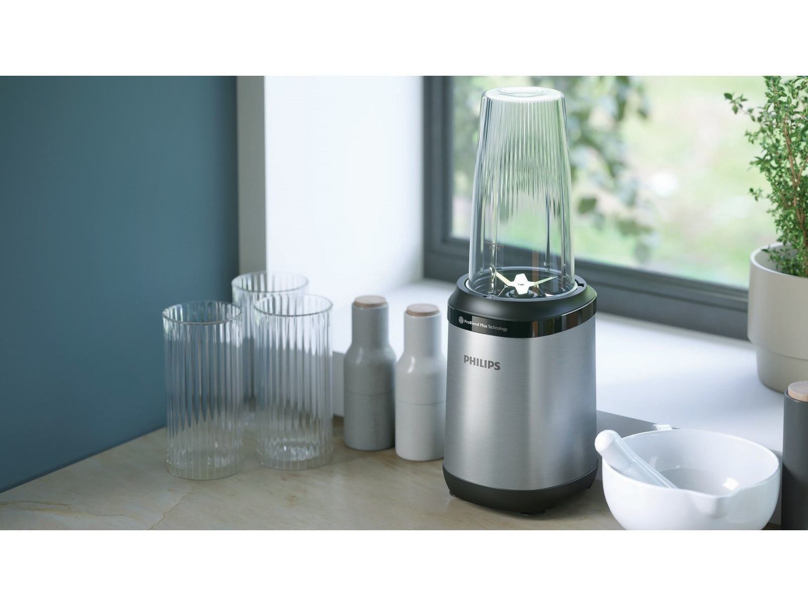 Berik dine kulinariske evner med blenderen fra Philips i 5000-serien. Nyt de jevneste blandingene selv fra oppskrifter med frosne frukter, isbiter og nøtter. Elegant design for kjøkkenbenken. Avtakbare deler som kan vaskes i oppvaskmaskin for enkel rengjøring.