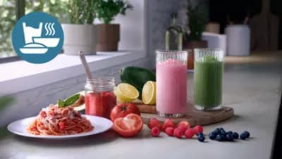 Oppdag en verden av deilige oppskrifter! Utforsk NutriU-appen vår for velsmakende drikke, supper, sauser med mer, pluss tips og veiledning for bruk av blender.