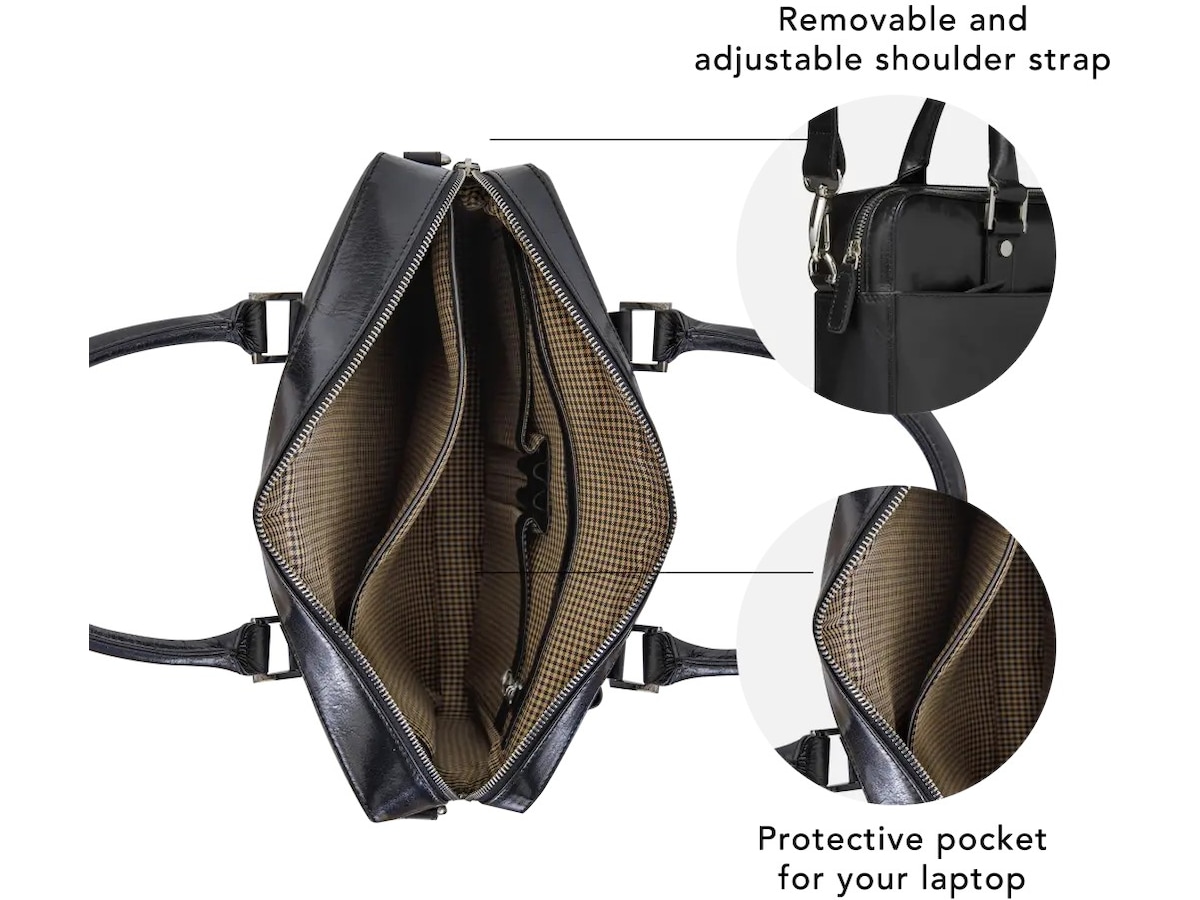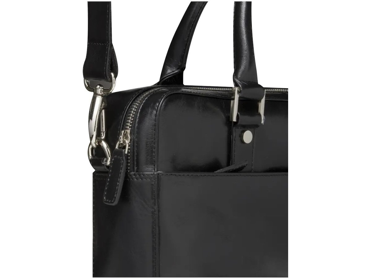 Håndlaget av bærekraftig fremskaffet fullnarvet skinn, passer laptop opptil 14"