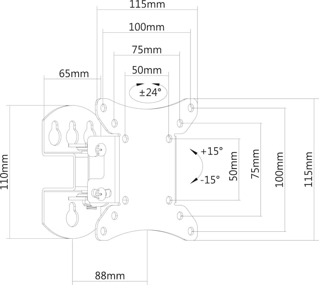 Universelt veggfeste for mindre skjermer og TV-er opp til 30 kg. Festet har en tiltvinkel på +-15° og kan vris +-24°. Den kompakte og robuste konstruksjonen sikrer at skjermen sitter sikkert på veggen.