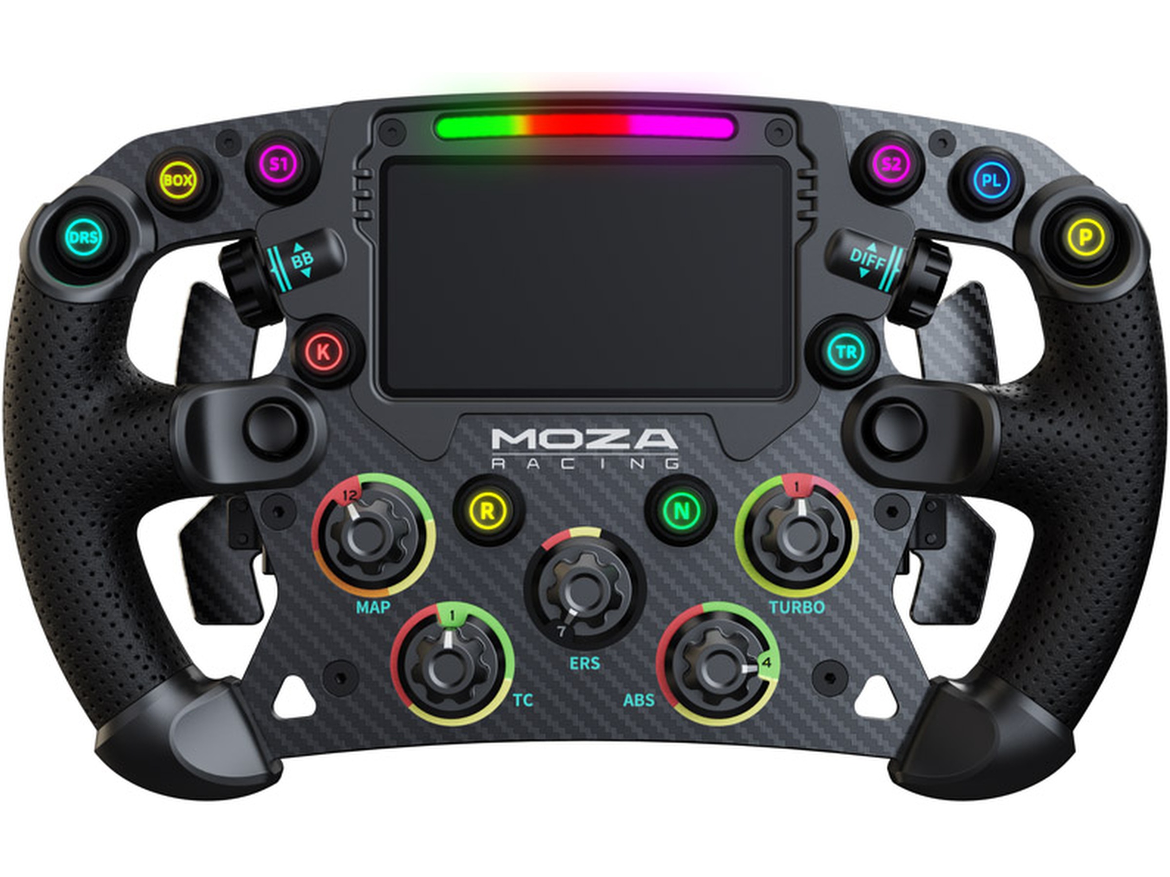 Torays karbonfiberkonstruksjon sikrer lett holdbarhet og en slående estetikk. Opplev lynraske girskift med de magnetiske dobbelclutchspadene. Oppretthold full kontroll over løpet med det 4,3-tommers innebygde digitale dashbordet, som gir deg sanntids racingdata rett ved fingerspissene. Nyt sømløse overganger med den tilpassede Quick-Release fra Real Racing og tilpass opplevelsen din ytterligere med tilpassbar RGB-rpm og skifteindikatorer, som gir et levende preg til oppsettet ditt.