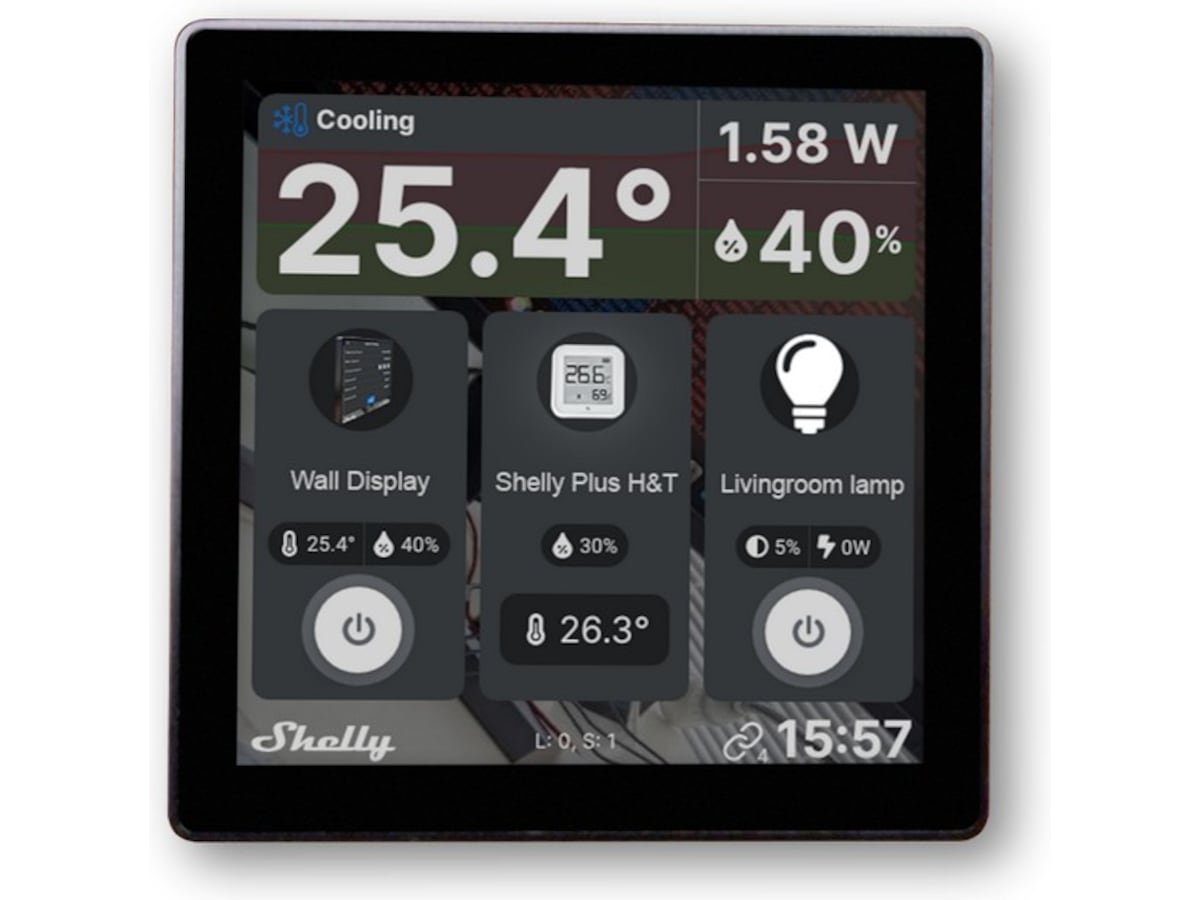 Shelly Wall Display er en intuitiv 4" veggdisplay som gir deg enkel, sentralisert kontroll og overvåkning av alle Shelly-enhetene dine. Med et minimalistisk utseende og tilpassbar startskjerm, vil Shelly Wall Display passe perfekt inn i interiøret ditt og justere seg etter dine behov. Bytt ut den vanlige lysbryteren på 10 minutter og betjen alle Shelly-enhetene dine med bare ett trykk.