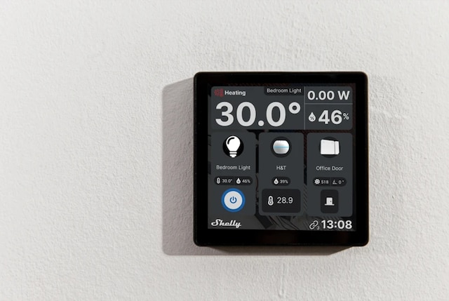 Bytt ut de tradisjonelle bryterne med Shelly Wall Display og koble det innebygde 5A-reléet til lysene dine. Med et enkelt trykk med to fingre kan du slå releet på eller av uten å måtte se. Og ikke bekymre deg – reléet kan også kobles til en tradisjonell lysbryter ved siden av skjermen for å passe til behovene til alle i hjemmet ditt. Likevel er Shelly Wall Display mer enn bare en smart bryter - det intuitive berøringsgrensesnittet lar deg enkelt flytte mellom faner og kontrollere de andre enhetene dine også. Den overvåker også rommets temperatur, fuktighet og strømforbruk aktivt, og viser denne informasjonen på startskjermen til enhver tid.