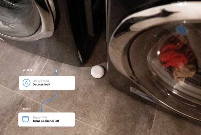 Vi planlegger alle tid unna, men vi bør ikke behøve å forlate hjemmene våre helt uten tilsyn. Bruk Shelly Plus 1 for å kontrollere hjemmets vannforsyning og Shelly Flood for å overvåke etter lekkasjer. Sammen kan de redde hjemmet ditt fra katastrofale vannskader! Hvis Shelly Flood oppdager en lekkasje, vil den utløse Shelly Plus 1 til å stenge av vanntilførselen for å minimere skader forårsaket av det utette røret eller apparatet.