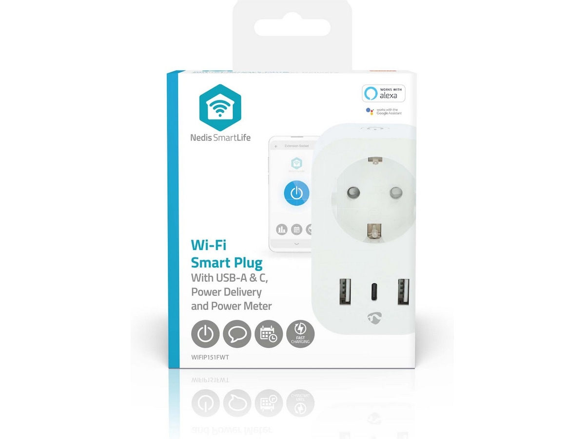 Bytt ethvert produkt med denne Nedis Smart Wi-Fi Power Plug (f.eks. lys, radio, vifte, vannkoker, oppvarmet teppe) enkelt fra smarttelefonen uansett hvor du er eller med en enkel talekommando til Google Home- eller Amazon Alexa-enheten. Denne smarte pluggen har en stikkontakt samt en USB-C og to USB-A-porter, slik at du enkelt kan koble til hvilken som helst USB-enhet.