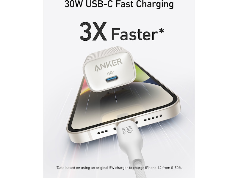 Høyhastighet – Lad iPhone opptil 50 % på bare 30 minutter – 3 ganger raskere enn en 5W iPhone-lagerlader.