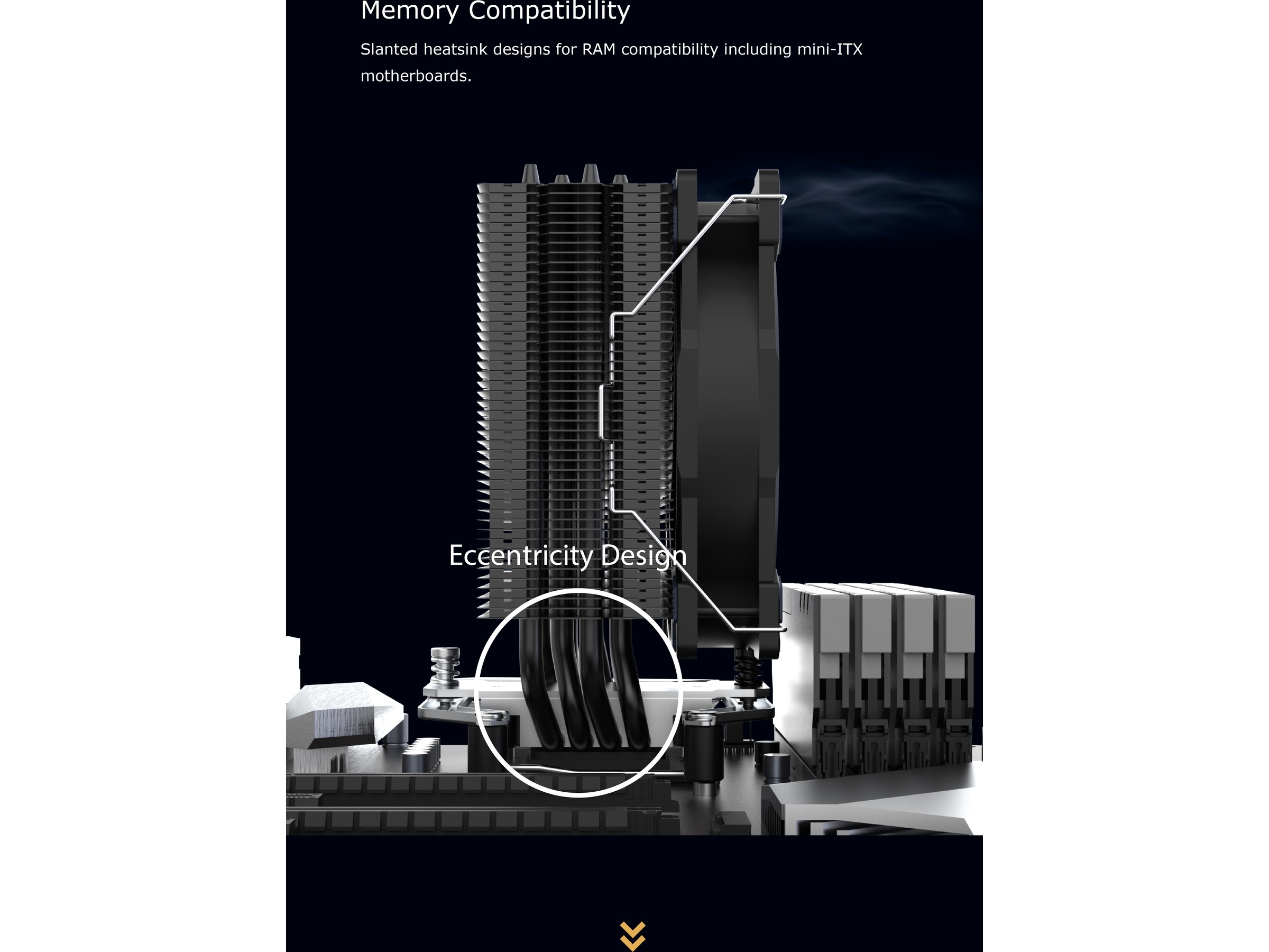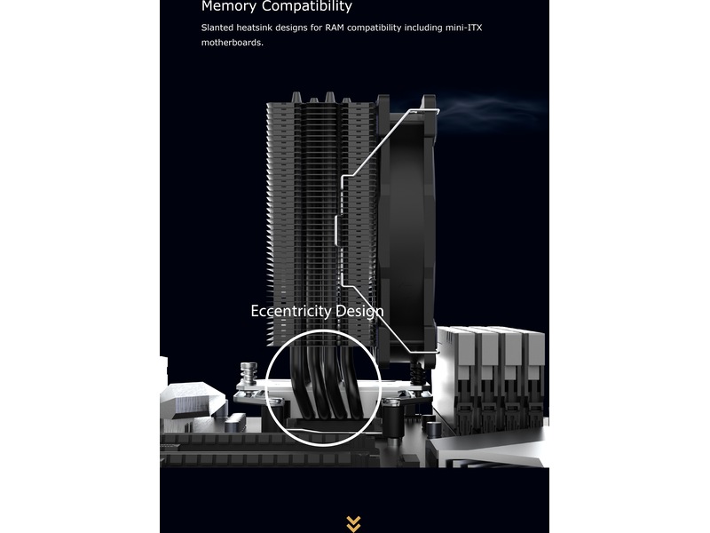 Design med høy tetthet for maksimal varmefordeling for å sikre at CPU-en får suveren kjøling. Elektrolakkert i svart for korrosjonsbestandighet og elegant estetikk.
