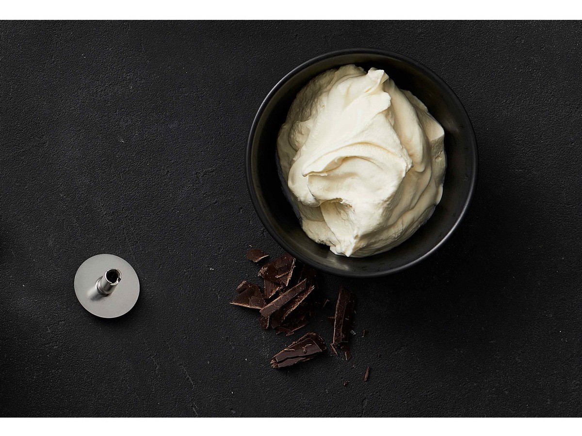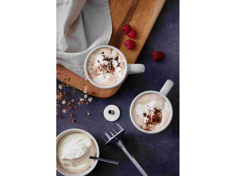 Bamix-visperbladet gir deg en herlig skummende pisket krem, piskede eggehviter, frappéer, suffléer og andre desserter; blander sauser og shakes og til og med beats.