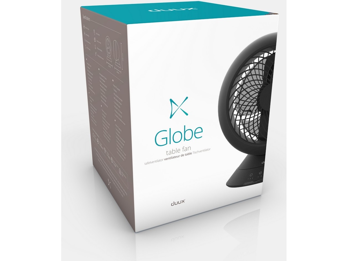 Med sin moderne design tar Globe seg bra ut på alle bord, skrivebord eller kjøkkenplate. Men skjønnheten går utover det som er på utsiden. Denne bordviften har en kraftig likestrømsmotor med en rekkevidde på 7 meter, maksimert av dens horisontale (90 ⁰) og vertikale (80 ⁰) svingninger. Denne forfriskende unike funksjonen gjør at viften dekker et imponerende bredt område - for optimal komfort i hele rommet.
